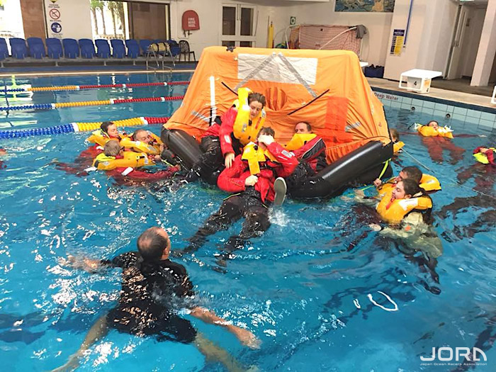 1日目は座学でたっぷりと講習を受けて翌日はライフラフトを使った講習。