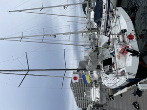 土曜朝、日本に到着し回航してきたばかりの貴帆とご対面。なんと勇ましい姿。惚れ惚れします。